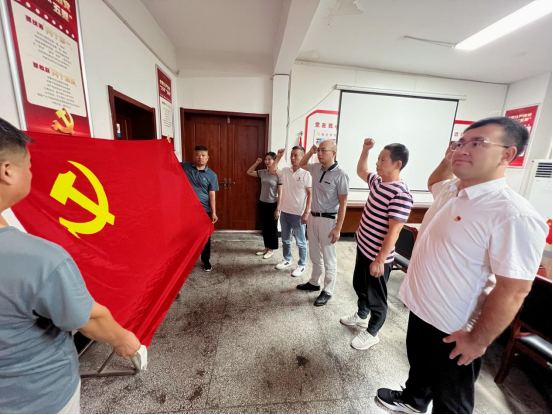 活動(dòng)開(kāi)始,全體人員集中觀看紀(jì)念中國(guó)人民抗日戰(zhàn)爭(zhēng)暨世界反法西斯戰(zhàn)爭(zhēng)勝利80周年大會(huì)。觀看過(guò)程中,大家保持安靜肅穆,認(rèn)真感受閱兵儀式所展現(xiàn)出的國(guó)家強(qiáng)大軍事力量和軍人昂揚(yáng)風(fēng)貌,深刻體會(huì)到其背后蘊(yùn)含的深厚愛(ài)國(guó)情懷與民族精神。整齊劃一的受閱方陣、先進(jìn)精良的武器裝備,讓全體黨員心靈受到極大震撼,自豪感油然而生。閱兵儀式結(jié)束后,全體黨員面向鮮紅的黨旗,莊嚴(yán)地重溫入黨誓詞。“我志愿加入中國(guó)共產(chǎn)黨,擁護(hù)黨的綱領(lǐng)……” 鏗鏘有力的誓言在會(huì)議室久久回蕩,字字千鈞,叩擊著每位黨員的心靈。這不僅是對(duì)初心使命的回溯,更是一次精神的淬煉與升華。